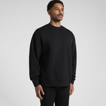 Fit: Relaxed Fabric: Mid weight, 320 GSM, 80% cotton 20% recycled polyester CVC fleece Construction: Pre-shrunk to minimise shrinkage, pullover crew, drop shoulder, crew neck, sleeve cuff ribbing Tear-out AS Colour label Saving approx. 7.2 500ml plastic bottles from landfill